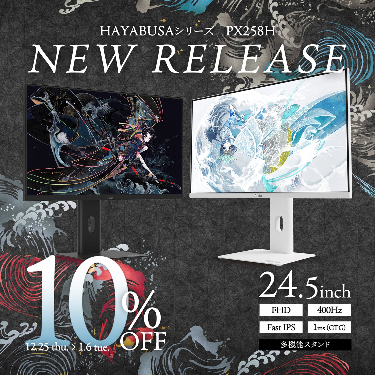 かわいいパステルブルー、パステルピンクのゲーミングモニターが登場! 【PX248WAVEシリーズ】