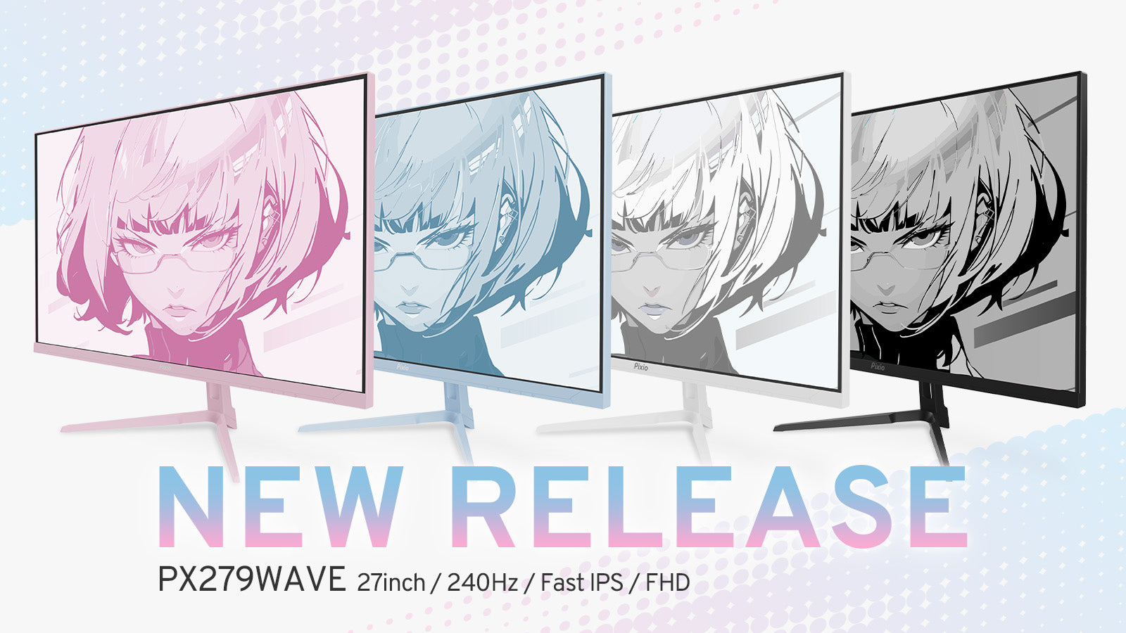 27インチ/240Hz/Fast IPSパネル/FHDのゲーミングモニター「PX279 Wave」が新登場。ブラック、ホワイト、パステルブルー、パステルピンクの全4色