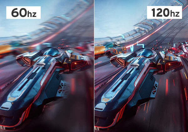 1秒間に最大120フレームを描写することで、一般的な60Hzのモニターと比べると映像がなめらかで視認性が良く、映像のブレが抑制されます。 -