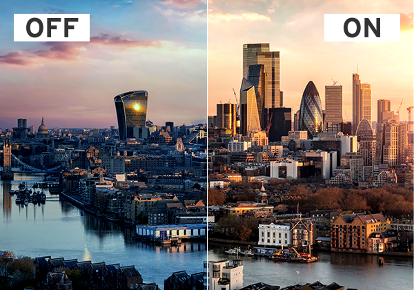 反射や映り込みが少なく、発色が柔らかになります。 -