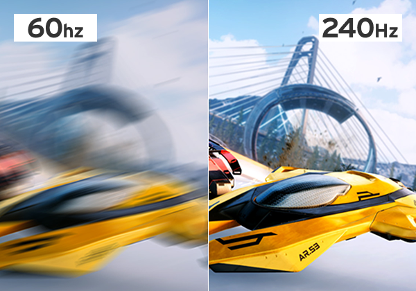 1秒間に最大240フレームを描写することで、一般的な60Hzのモニターと比べると映像がなめらかで視認性が良く、映像のブレが抑制されます。 -