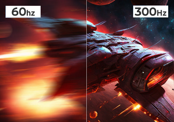 1秒間に最大300フレームを描写することで、一般的なゲーミングモニターである144Hzのモニターと比べると映像がなめらかで視認性が良く、映像のブレが抑制されます。 -