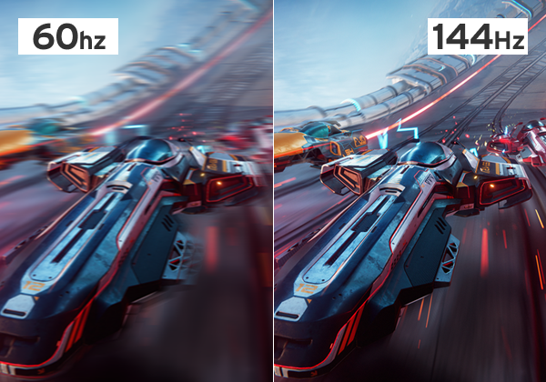 1秒間に最大144フレームを描写することで、一般的な60Hzのモニターと比べると映像がなめらかで視認性が良く、映像のブレが抑制されます。 -